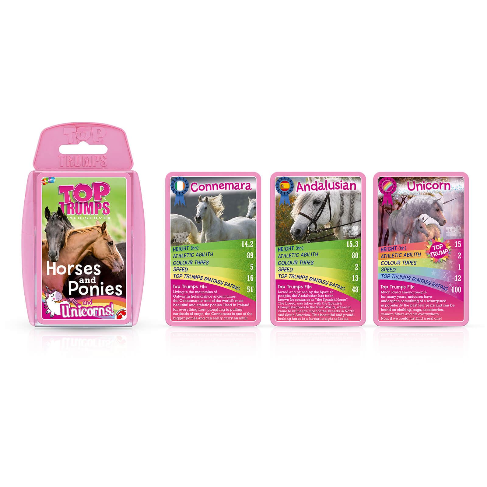 Horses and Ponies and Unicorns! Top Trumps is filled to the brim with impressive stats and facts about your all-time favourites. How does Falabella measure up to Shetland? And lookout for the Unicorns in the battle to becoming the Top Trump!